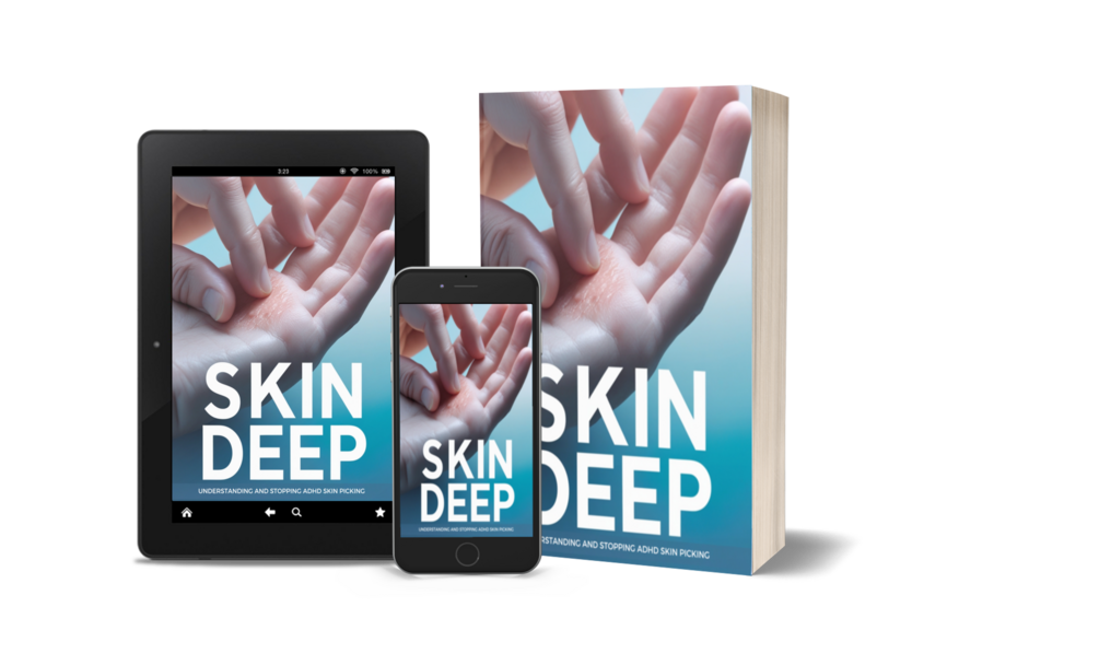 We created SKIN DEEP to help you understand and stop skin picking caused by ADHD. This isn’t just a book—it’s your roadmap to breaking free from the patterns of picking, guilt, and emotional distress.