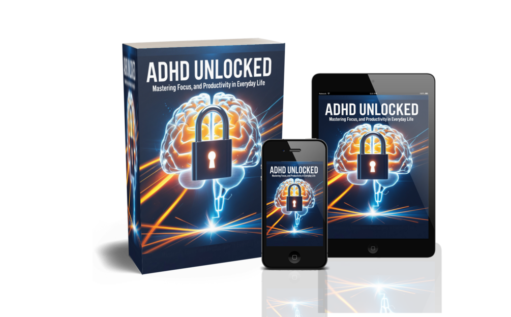 ADHD Unlocked is a powerful, science-based ebook designed for adults, women, and even kids with ADHD who want to finally improve their productivity, focus, and mindset—without medication or complex routines.